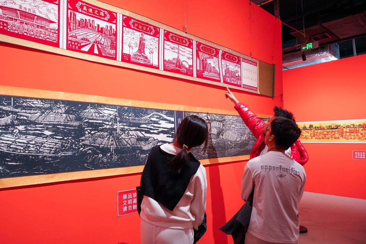 秉持“无界津湾”理念,津湾广场打破艺术门类,为大众呈现多元文化盛宴与民间艺术市集。一方面,作为津派剪纸的核心展示窗口,此次津湾广场汇集名家与中青年骨干作品,作品涵盖传统经典与时代创新脉络,尽显“以刻代剪、刀法精湛,阴阳相济、线条灵动”的特色,其中由天津市民协剪纸艺术专业委员会精心创作的剪纸长卷气势恢宏,融入津沽地标、新质生产力等元素的剪纸长卷,成为展览焦点;另一方面,本次展览特邀印钮石雕、北辰农民画同台亮相,前者以寿山石等优质石材创作,融合篆刻、圆雕等技艺彰显“津味”,后者以“构图饱满、色彩火爆明快、造型稚拙率真”的特质描绘乡土风情,尽显“天趣盎然、以情动人”;民间艺术市集将于正月初一至初六在展览馆开放,主打烙画、印钮、刻瓷等民间艺术作品,让传统技艺成为可赏可购的生活好物。