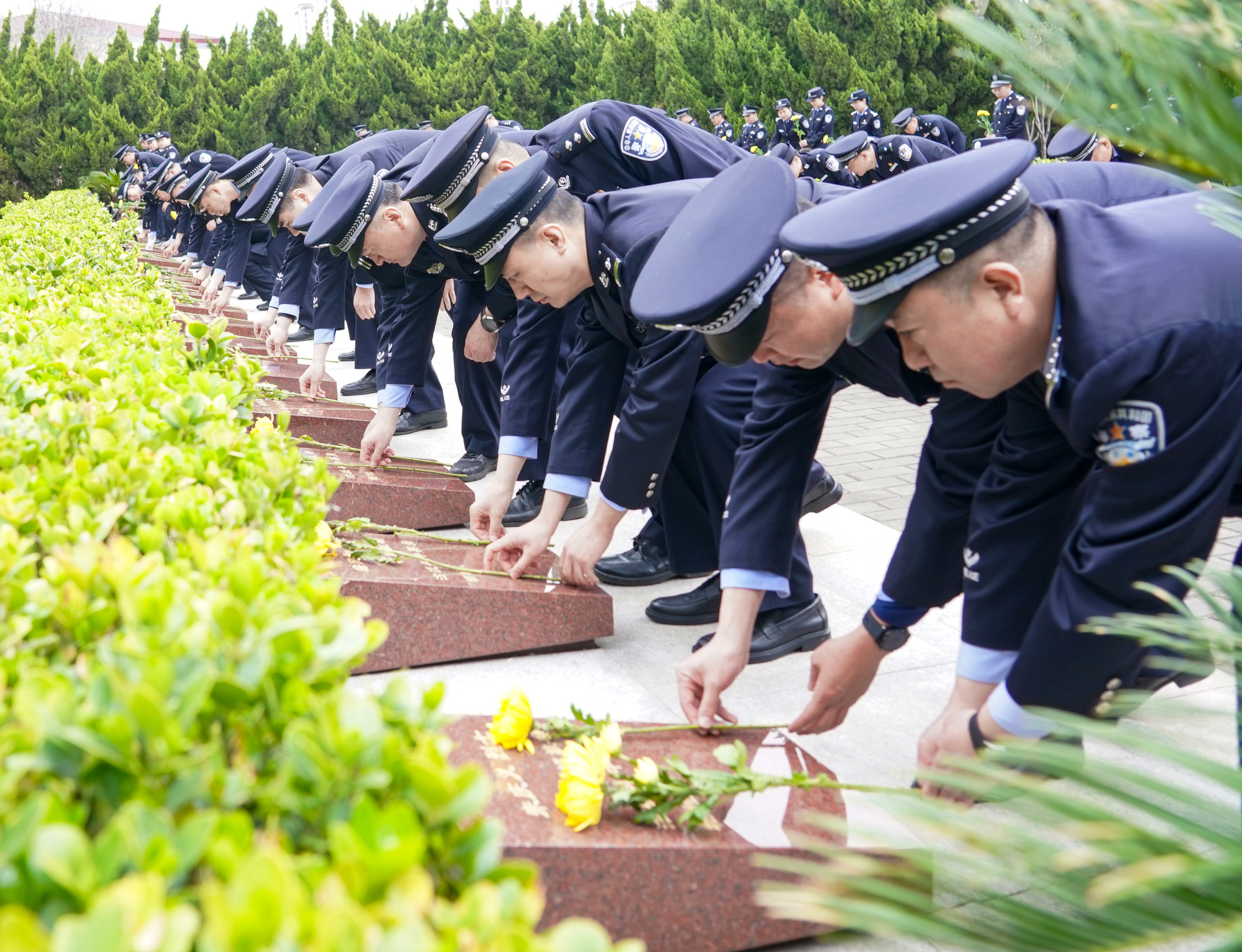 央广网天津4月5日消息(记者褚夫晴)春日松柏肃立,英魂浩气长存。近日,天津边检总站下辖天津、东疆、塘沽、东港四个边检站80余名民警代表齐聚天津市滨海新区塘沽烈士陵园,联合开展“缅怀公安英烈、凝聚奋进力量”主题活动,深切缅怀为民族独立、人民解放浴血奋战的革命先烈,追思英烈事迹、传承红色基因,将英烈精神转化为守护国门的奋进力量。