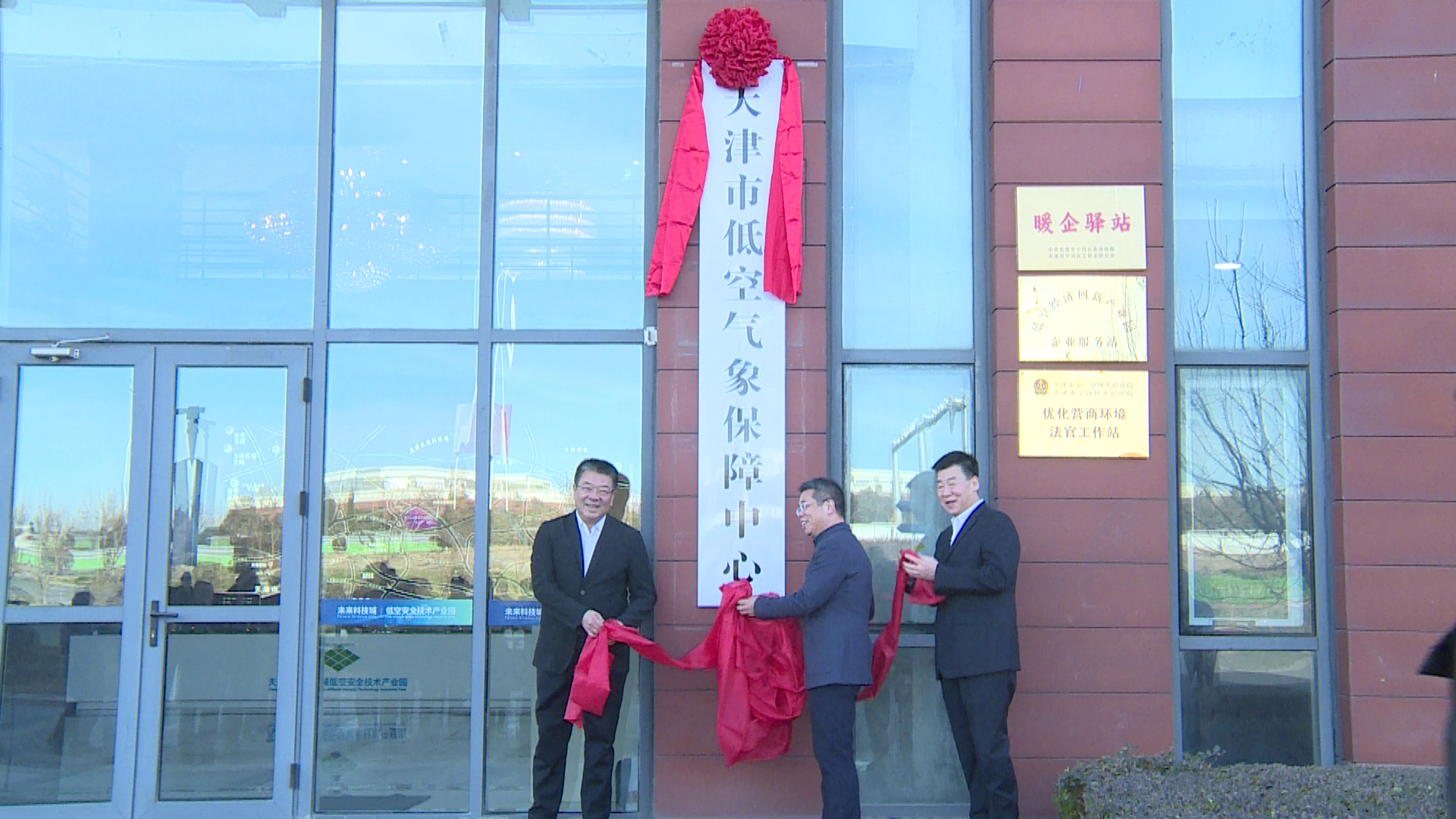 惠冰与金琪、王文平共同为天津市低空气象保障中心揭牌(央广网发 宁河区供图)