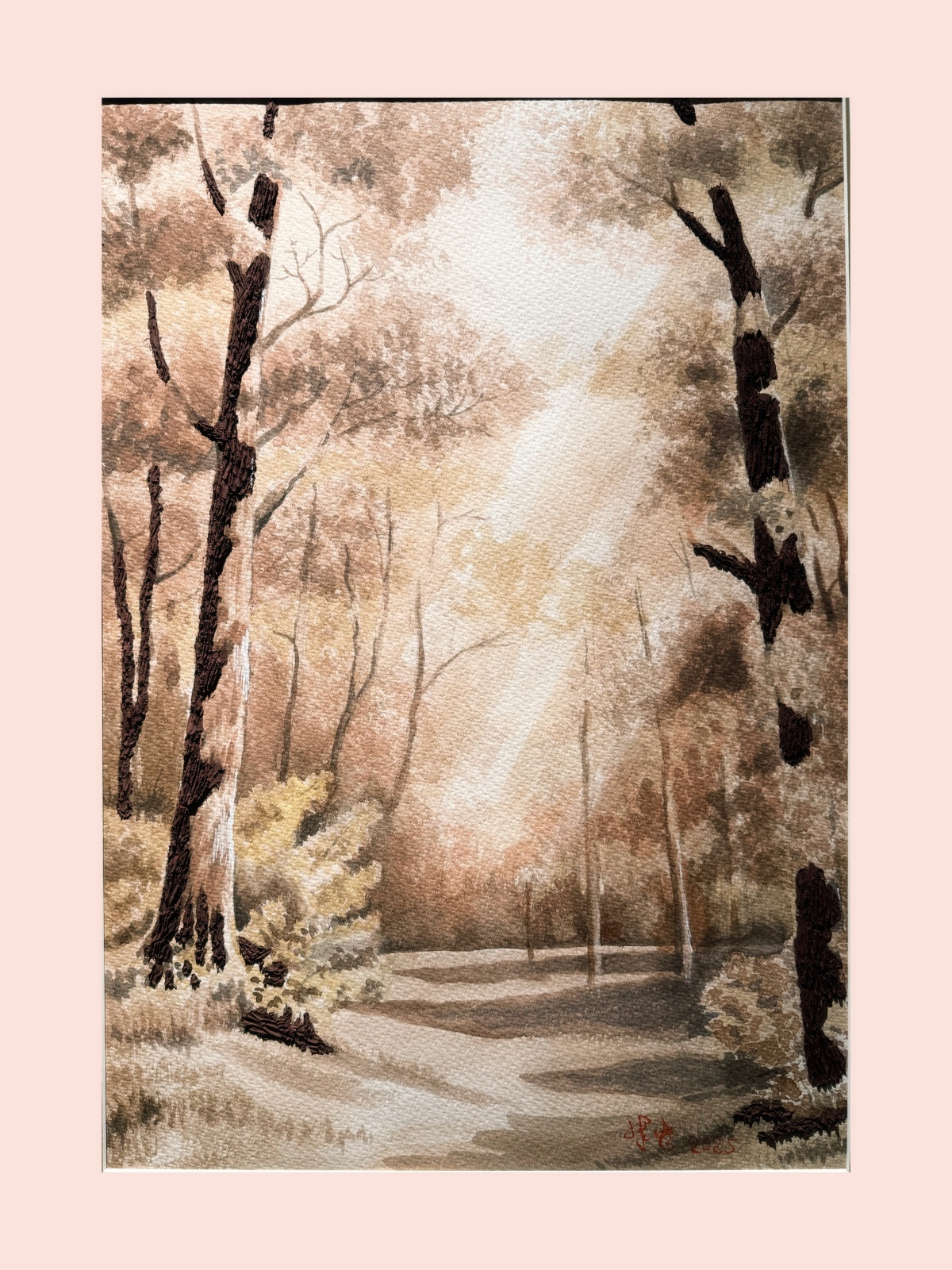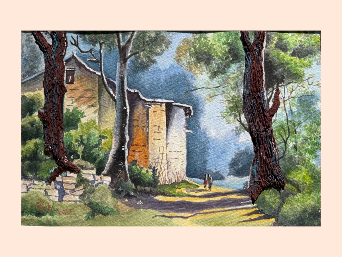 作为本次比赛的特色获奖作品,这两件香画打破传统艺术边界,将中医药文化与绘画技艺深度融合。创作者以檀香、乳香等芳香类中药为核心原料,搭配薄荷、白芨、玫瑰等药食同源植物,经中医理论配伍、传统炮制工艺处理后,制成树干、泥土等画面基础素材。作者通过细腻的笔触勾勒乡村景致、林间风光,使作品既在视觉上呈现出自然静谧的美学意境,又能通过缓释的天然香气营造沉浸式体验,让观众在欣赏画作的同时,通过嗅觉感受草木芬芳,契合中医芳香疗法的养生理念,实现“视觉赏景、嗅觉养生”的双重享受。