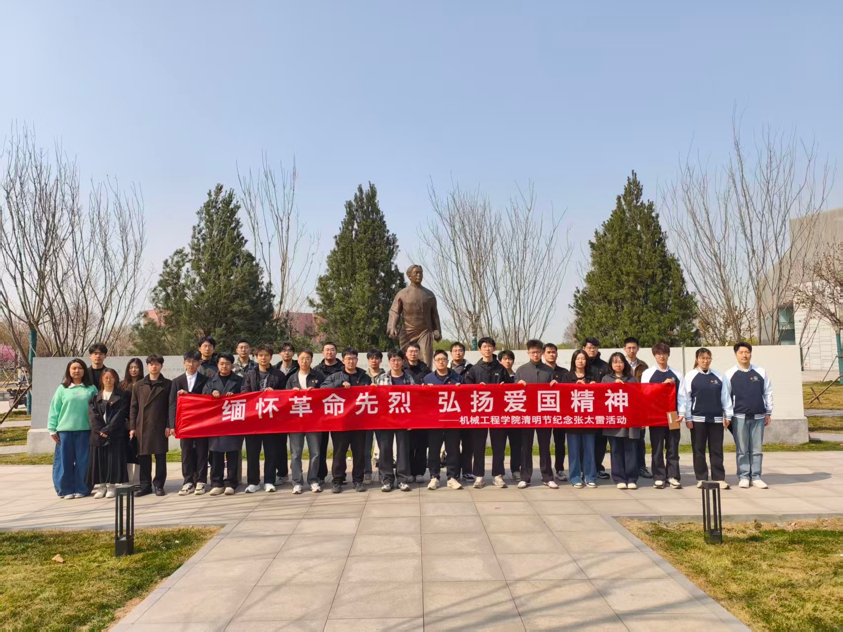 在天津大学太雷广场的张太雷烈士塑像前,天津大学“太雷班”学员与近百名青年学生齐聚于此,用一场主题朗诵活动完成了一次穿越百年的青春对话。当同学们齐声诵读张太雷烈士的家书,“谋将来永远幸福”的铮铮誓言在巍巍学府上空久久回荡。同样的缅怀也在南开区烈士陵园旧址进行。“太雷班”学员与精仪学院师生在这里举行清明祭扫,向革命烈士默哀致敬。在烈士纪念碑前,第二十期太雷班团支部书记刘骁高举右拳,带领大家重温入团誓词。“我志愿加入中国共产主义青年团……”铿锵誓言与先烈们的革命精神交相辉映。