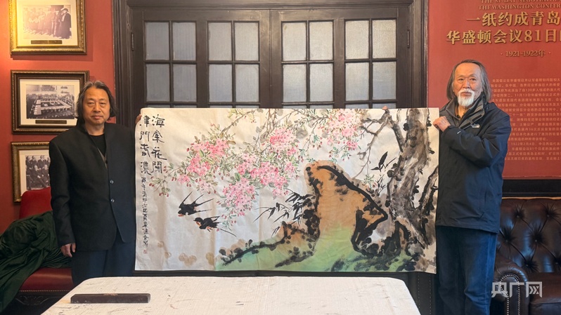 京津两地画家共绘《美哉海棠》画作(央广网记者 褚夫晴 摄)