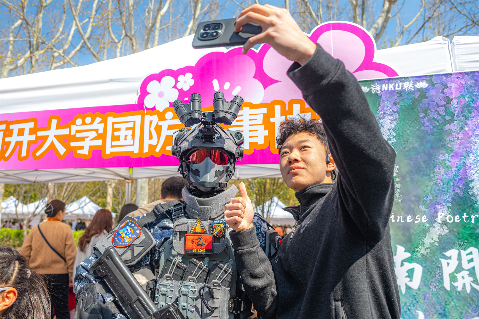 30余家学生社团各展其美,让科技创意、艺术表达与兴趣探索在这里交汇。国乐相声协会说学逗唱,“津味”十足;龙舟协会“挥桨发力”,元气满满;随机舞蹈、魔术表演、模拟打靶、琴棋书画……南开学子的蓬勃朝气在这一方天地间尽情绽放,充满了欢声笑语。