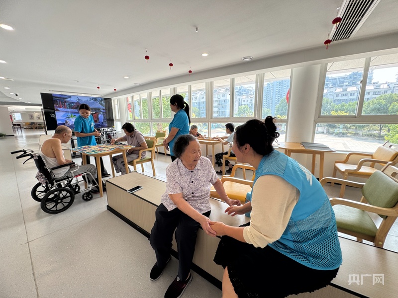 央广网杭州10月9日消息(记者 项楠)10月9日11时30分,记者走进杭州滨康乐龄中心,映入眼帘的是一派温馨景象:部分刚用完午餐的托养老人,正坐在窗边沐浴午后暖阳,在机构工作人员的陪伴下,或聊天、或写毛笔字、或下棋,尽显轻松惬意。