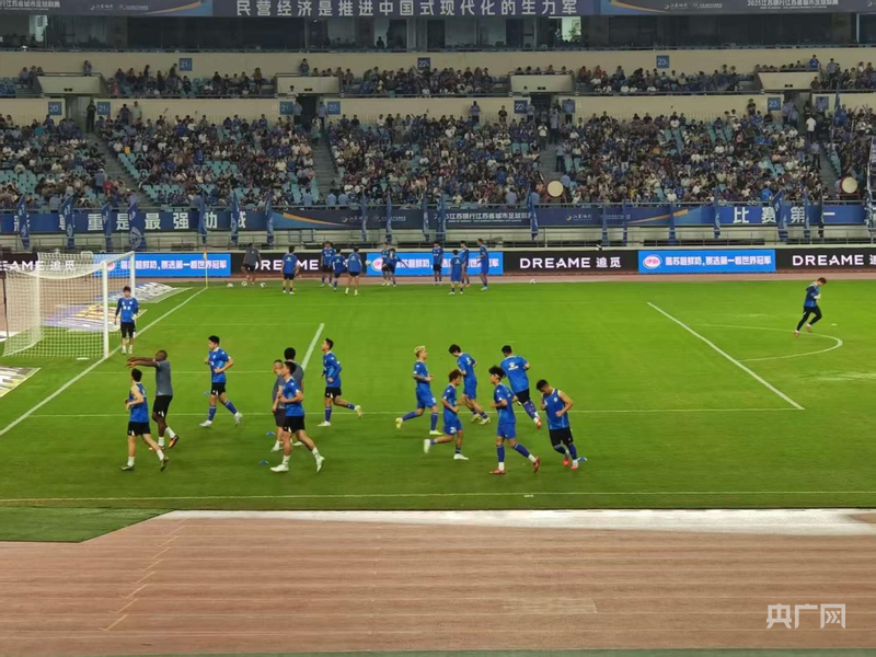 南京队1/4决赛赛前热身(央广网记者 王锡斐 摄)