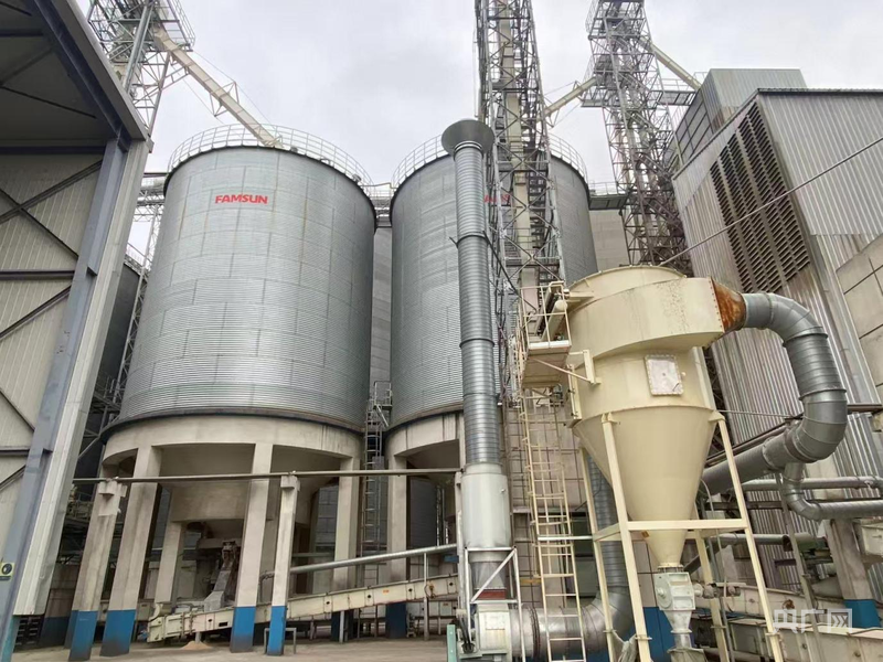 周口郸城金丹科技公司厂区内,烘干塔正在连续烘干玉米(央广网记者 夏莎 摄)