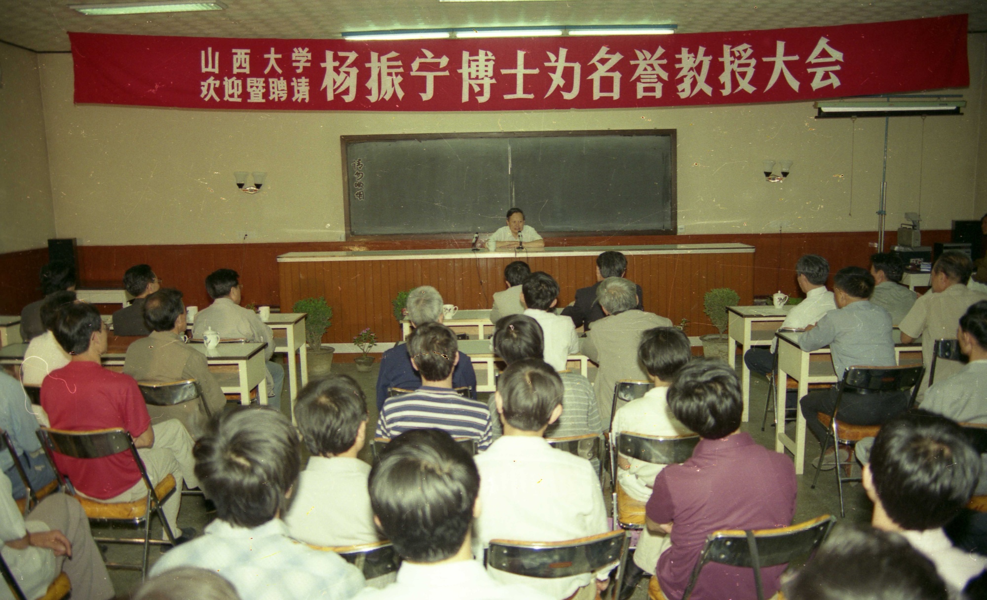 1992年,杨振宁先生在山西大学讲座(央广网发 山西大学供图)