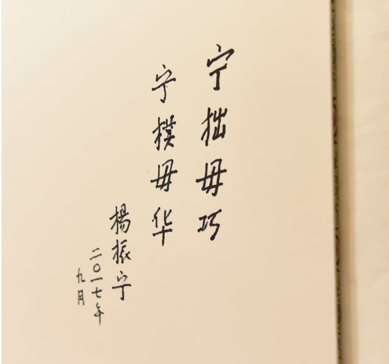 山西大学档案馆里珍藏的杨振宁先生的题词(央广网发 山西大学供图)