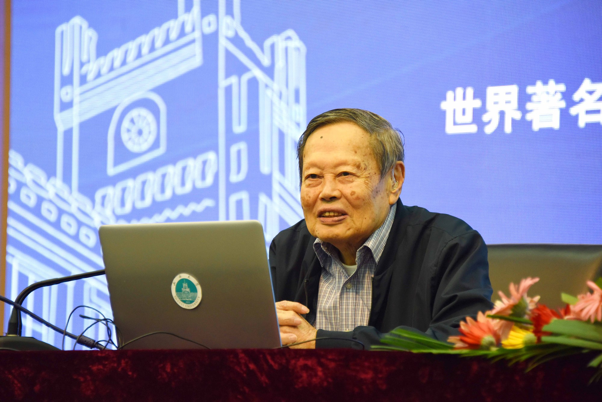 2017年,95岁高龄的杨振宁先生在山西大学讲座(央广网发 山西大学供图)