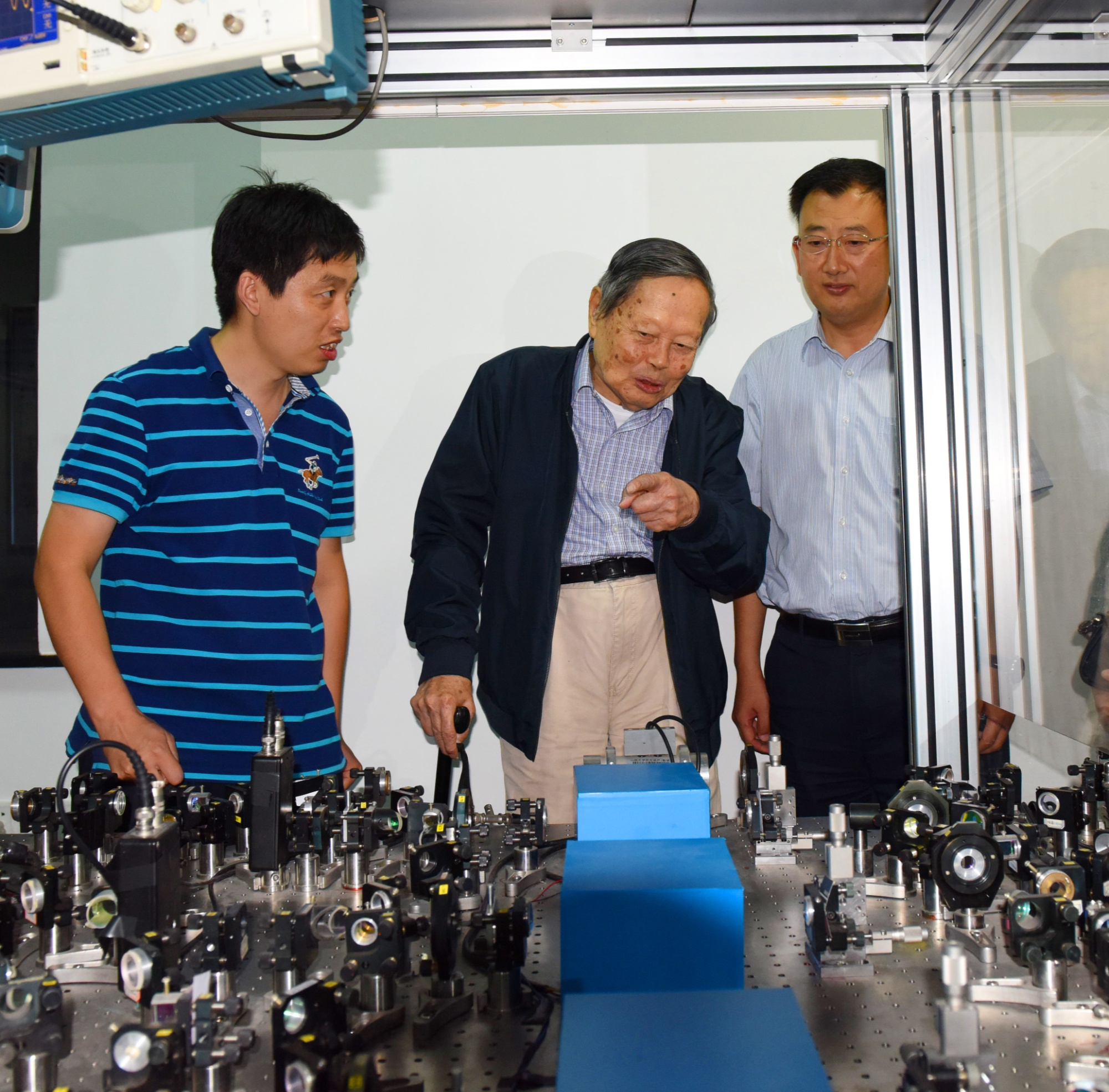杨振宁先生参观实验室(央广网发 山西大学供图)