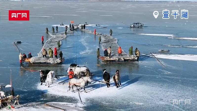 查干湖冬捕画面(视频截图)