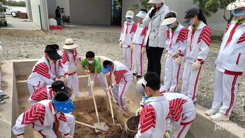 小朋友们正在体验夯筑长城(央广网发 嘉峪关市逸夫小学供图)