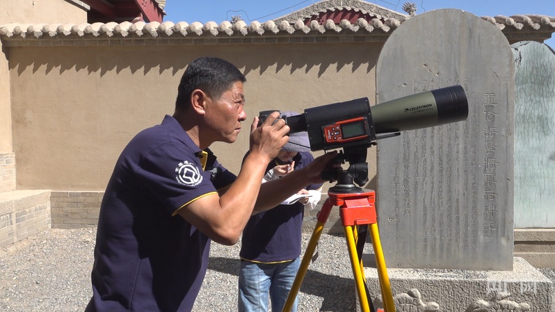 杨殿刚正在察看嘉峪关长城重点监测区域情况(央广网记者 魏晋雪 摄)