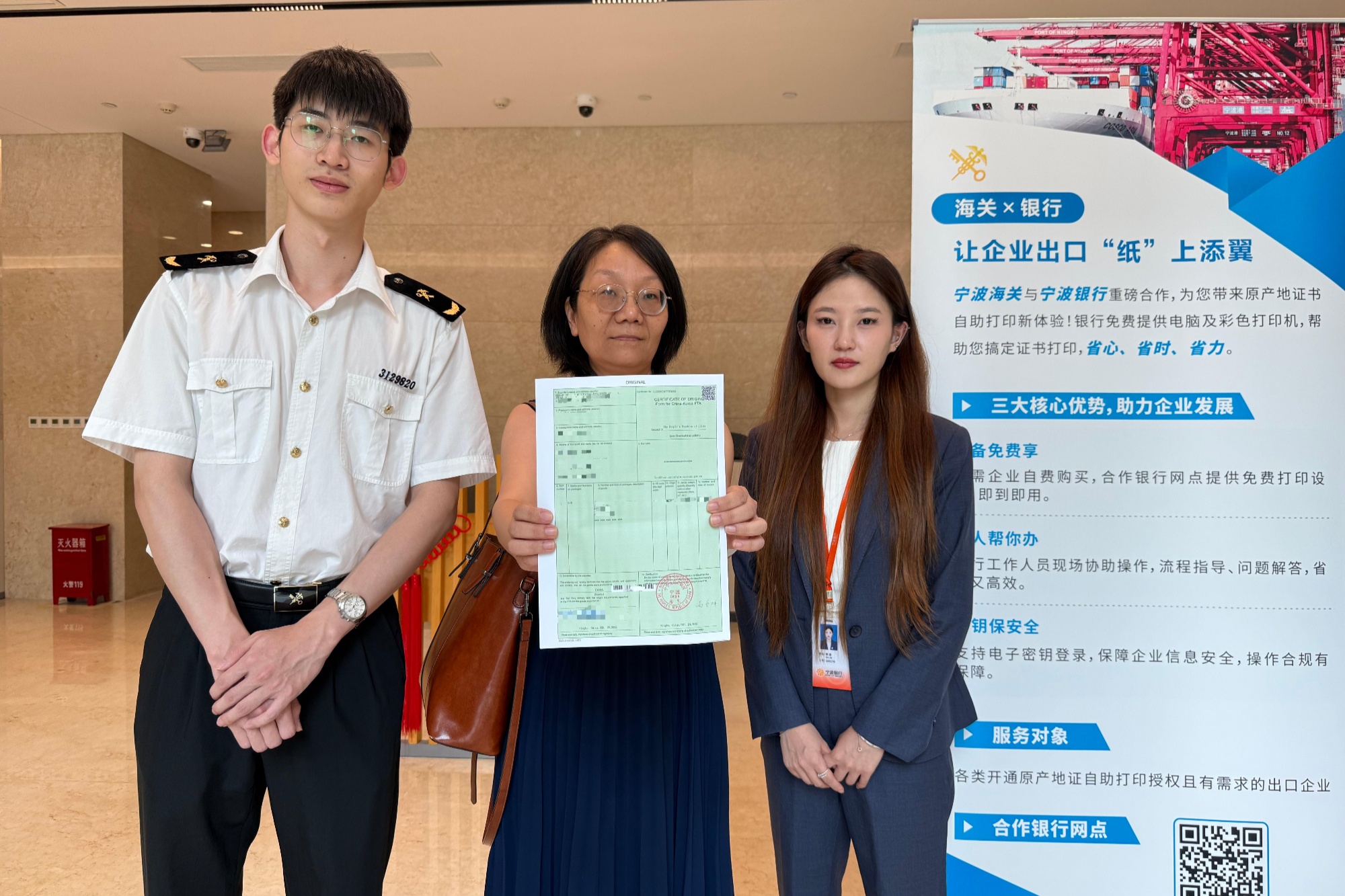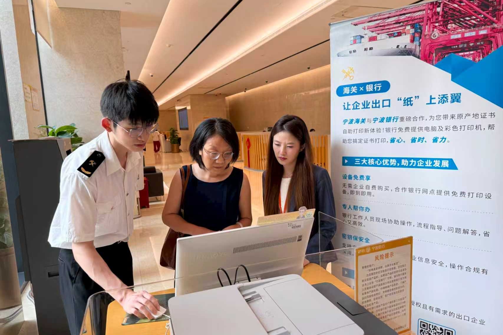 为破解这一痛点,宁波海关联合宁波银行推出服务新场景,依托银行网点分布广、覆盖密的优势,在宁波银行网点布局首批19个原产地证书自助打印服务点。这是继将该功能纳入“宁波办事”政务服务自助终端后,宁波海关深化“全链在线办、全程不见面”服务模式的又一实践,实现海关服务从政务大厅向金融网点的延伸,让企业尤其是中小微企业能“零成本”就近享受即需即打的便利。