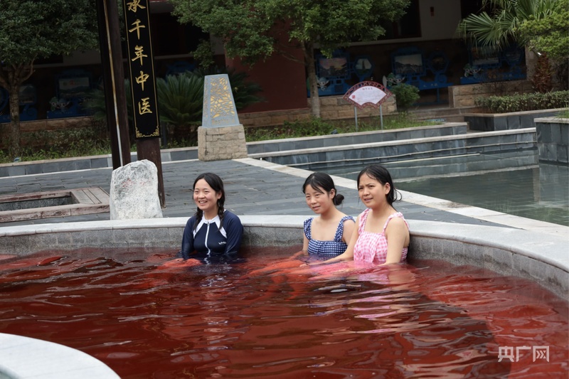 游客正在享受温泉带来的惬意(央广网记者 杨贇 摄)