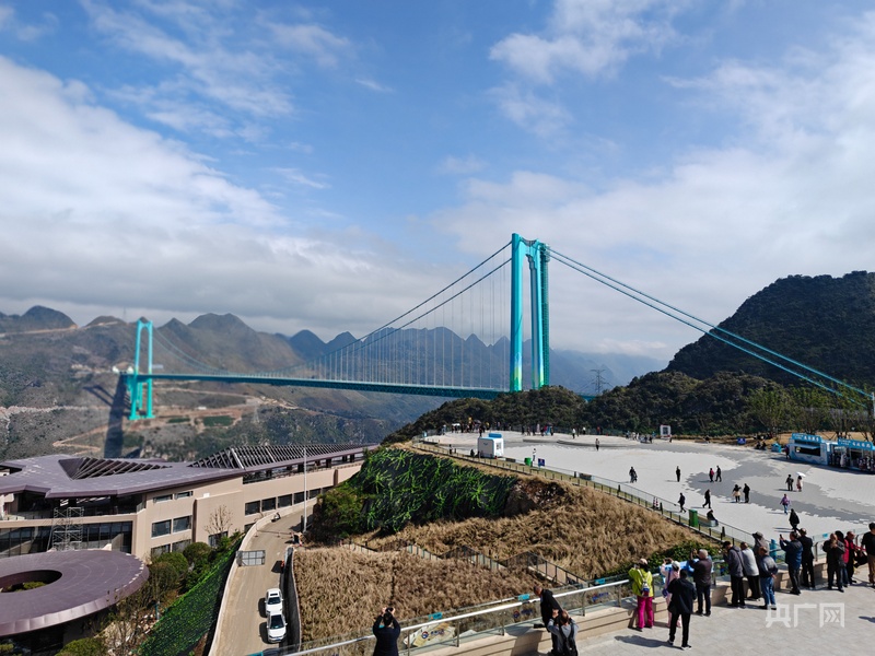 游客在花江峡谷大桥旅游区游玩(央广网记者 栾小琳 摄)