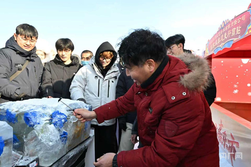 游客在采冰节上体验冰雕(央广网发 康凤文摄)