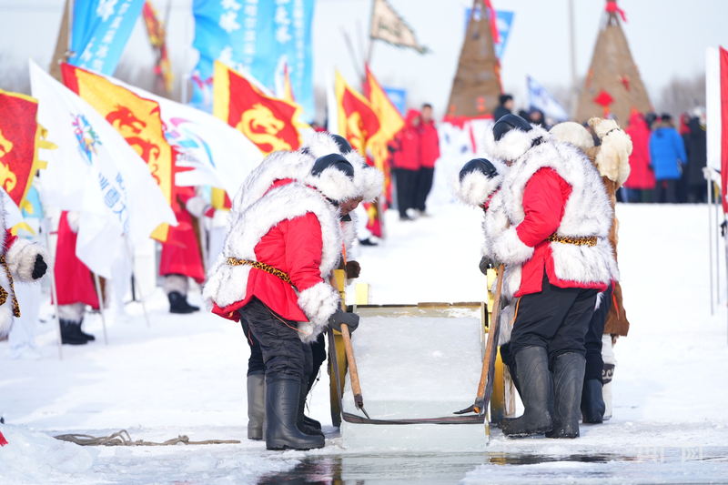 大雪节气,松花江上,身着传统服饰的采冰人齐喊号子,手执冰镩,奋力凿向冰面。伴随“咔嚓咔嚓”的清脆声响,今冬第一块完整的冰料被缓缓拉出水面,标志着黑龙江正式进入一年中最“热”的冰雪季。