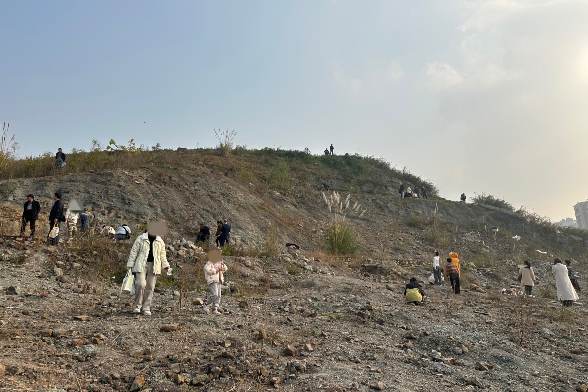 记者注意到,核心区域的管控显现成效的同时,不少市民对化石的探索热情仍有延续。在公路对面的一处山坡上,部分市民带着孩子在此驻足探索,有市民用手机记录下现场状态并分享,也有不少市民闻讯后陆续来到现场。