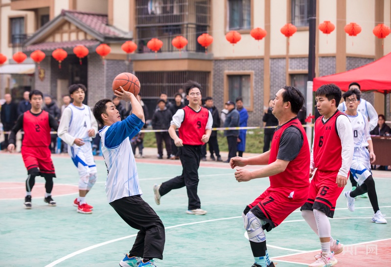贵州省黔西市锦绣花都易地扶贫搬迁安置点举办的篮球比赛(央广网发 史开心 摄)