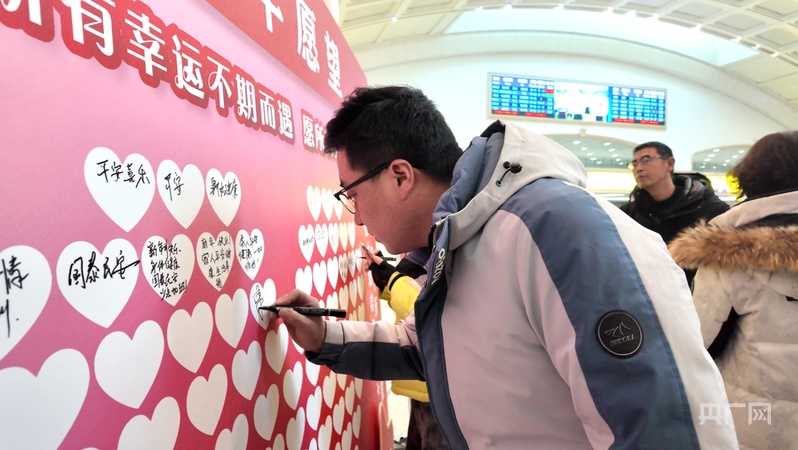 旅客在心愿墙写下新年愿望(央广网记者 张瀚予 摄)