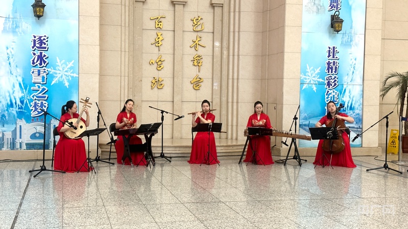 央广网哈尔滨12月30日消息(记者张瀚予)12月30日,在哈尔滨站百年舞台,一场以民族乐器为主的文艺汇演精彩上演,悠扬的旋律响彻车站候车大厅,为往来旅客送上了别样的出行问候。舞台两侧,设计精美的“元旦心愿墙”格外醒目,过往旅客纷纷驻足提笔,写下对新一年的美好期许,让冬日的车站充满了温馨的节日氛围,也为2026年元旦假期铁路客运服务拉开了温情序幕。