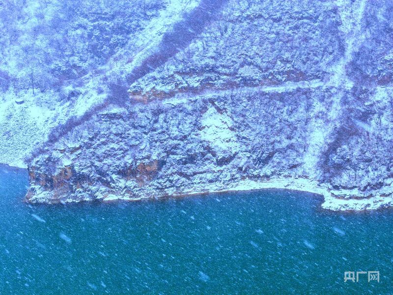 云台山子房湖迎来冬雪,湖光山色映衬,景色美不胜收(央广网发 云台山景区供图)
