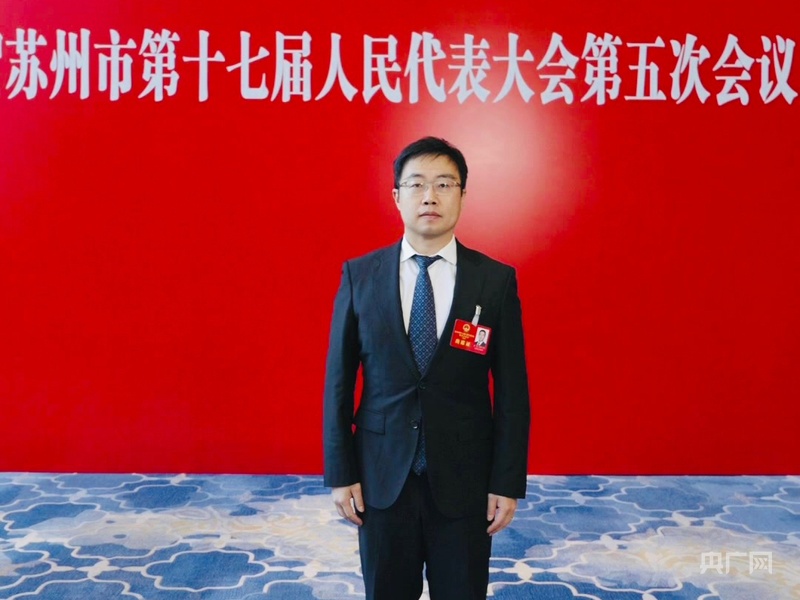 张磊代表在苏州市十七届人大五次会议现场(央广网记者 吕倩媛 摄)