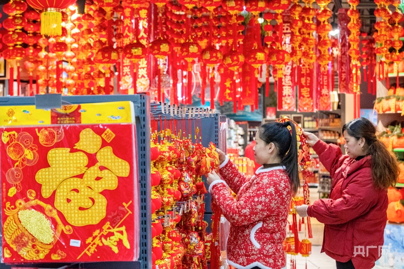 市民在贵州省从江县一家商场选购新春饰品(央广网发 罗京来 摄)