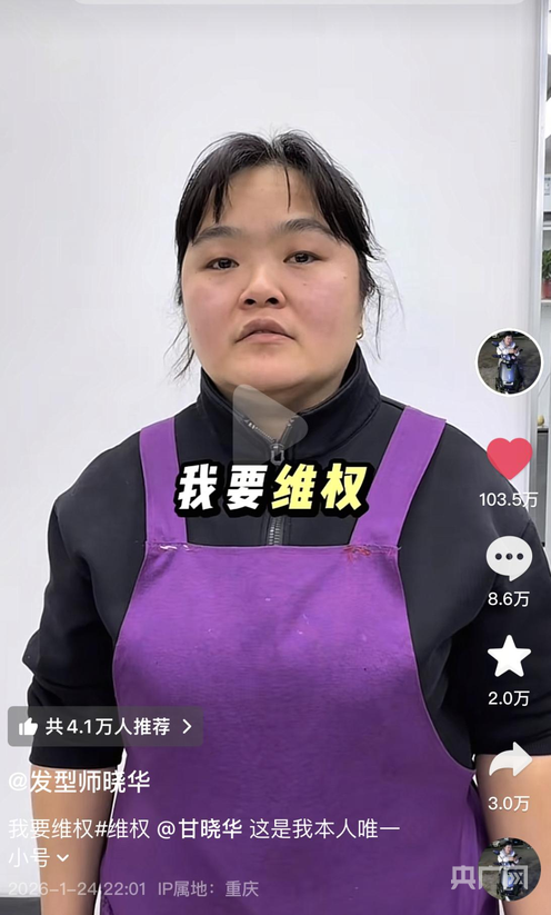 网红理发师晓华的维权求助短视频引发关注(央广网发 图片来源:某短视频平台账号@发型师晓华)