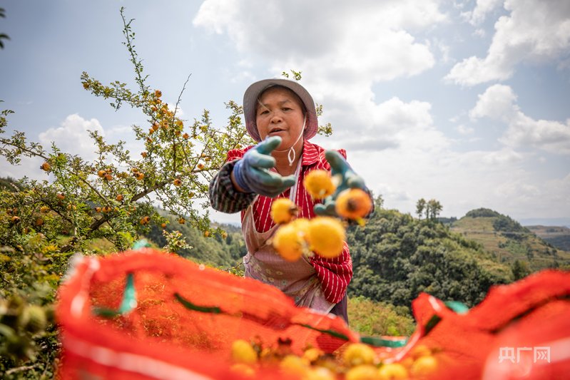 大方县鼎新乡五一村,村民正在采摘刺梨(央广网发 何志刚 摄)