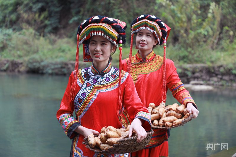 彝家姑娘清洗天麻(央广网发 何志刚 摄)