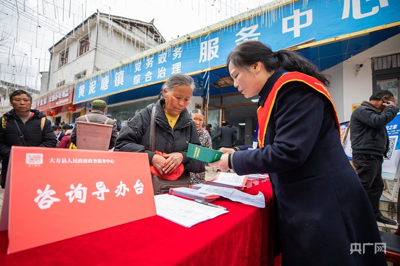 大方县政务服务中心在该县黄泥塘镇设置群众咨询导办台(央广网发 何志刚 摄)