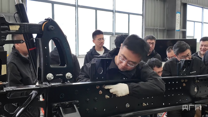 张磊团队在载合工程中心进行整车试制研发(央广网记者 吕倩媛 摄)