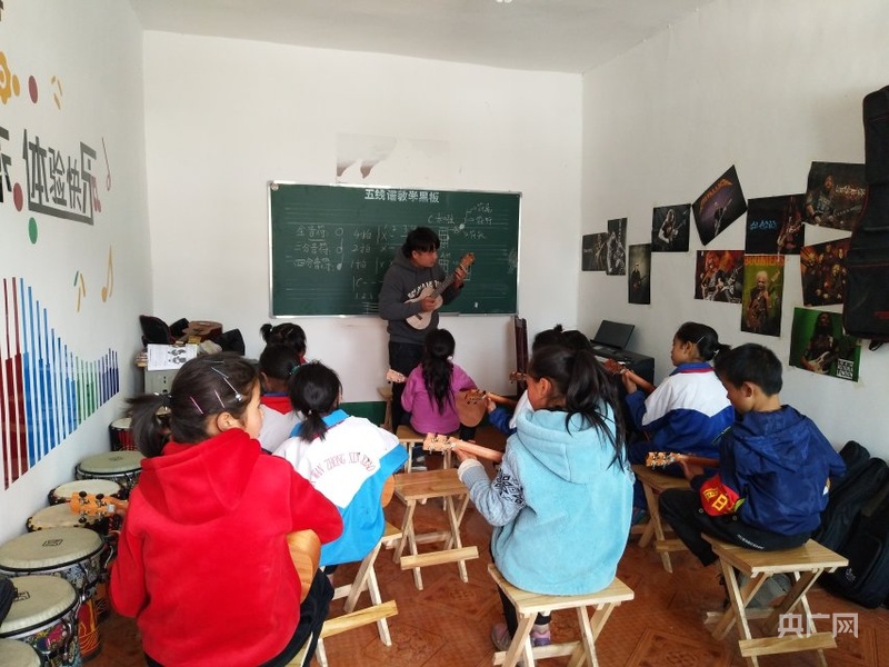 顾亚在教室教孩子们学吉他(央广网发 受访者供图)