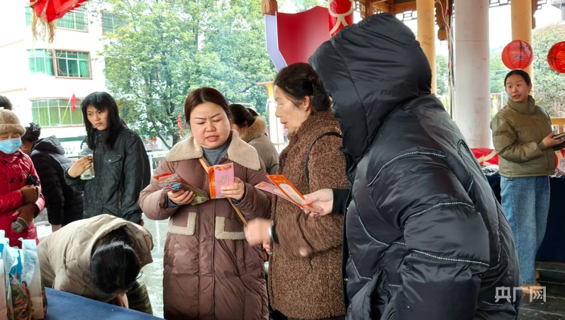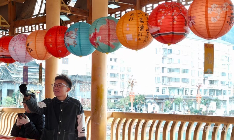 当天14时,猜灯谜活动在台江新风雨桥如期举行。桥身两侧,色彩缤纷的灯笼整齐排列;灯笼下方,一张张写满谜面的彩色纸片随风摆动。人们沿着桥廊缓缓穿行,猜到谜底后就摘下纸片,走到指定位置核实答案、兑换奖品。奖品是一些生活用品,虽不贵重,但每个人拿到手里时,脸上都透露着满足与喜悦。