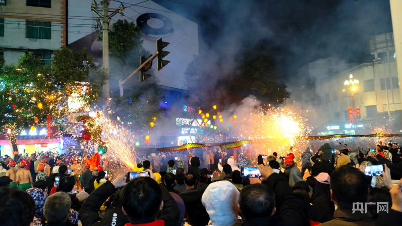 不少游客第一次亲历这般盛况,纷纷举起手机、相机记录下这惊险又震撼的瞬间,在火花与欢笑声中沉浸式感受苗乡非遗的独特魅力,真正体验到“勇敢者的游戏”的狂野与激情。街巷之上,龙在火中舞,人在花中欢,浓浓的年味与烟火气扑面而来。