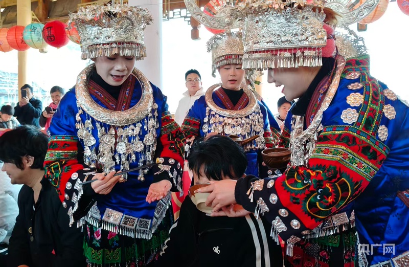 苗族姑娘们给客人敬酒(央广网发 范碧琴 摄)