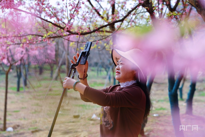 游客在园中拍照赏花(央广网发 万飘阳 摄)