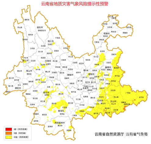 云南省地质灾害气象风险提示性预警(央广网发 来源:云南省气象局)