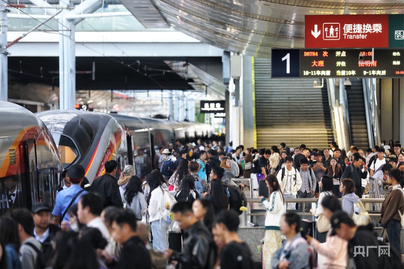 央广网昆明10月10日消息(记者 赵贝贝)2025年国庆中秋假期期间,云南铁路运输安全平稳有序,旅客发送量实现显著增长。记者从中国铁路昆明局集团有限公司(以下简称“国铁昆明局”)获悉,10月1日至8日,云南铁路累计发送旅客突破363.2万人次,日均发送旅客45.4万人次,同比增长8%。其中,10月1日单日发送旅客60.6万人次,同比增长13.8%,刷新历史纪录。
