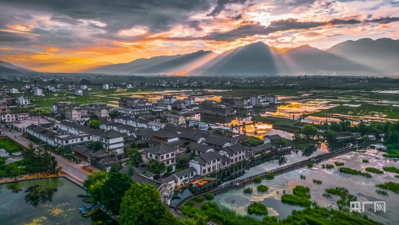 夕阳余晖下的草海镇(央广网发 李光明 摄)