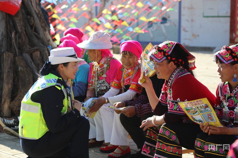 交警向群众宣传交通安全知识(央广网发 云南省公安厅供图)