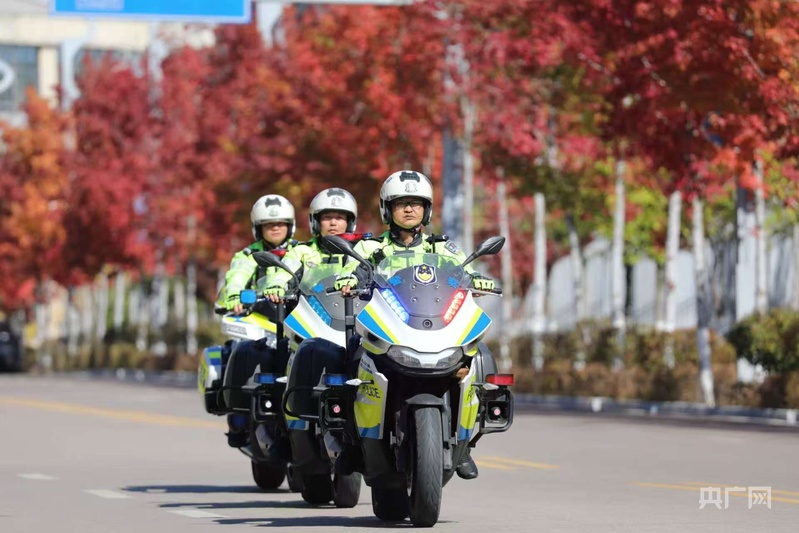 骑警在街面巡逻保障交通安全(央广网发 云南省公安厅供图)