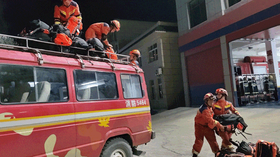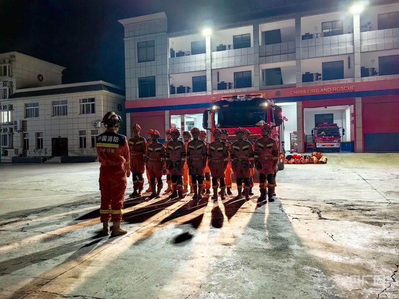 消防救援人员在地震发生后迅速集结队伍赶往震中(央广网发 来源:昭通消防)