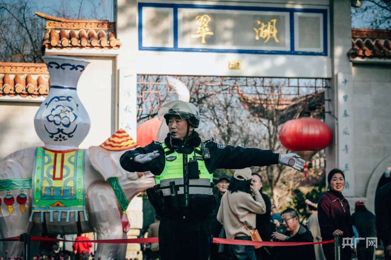 交警在翠湖公园执勤疏导交通(央广网发 来源:云南省公安厅)
