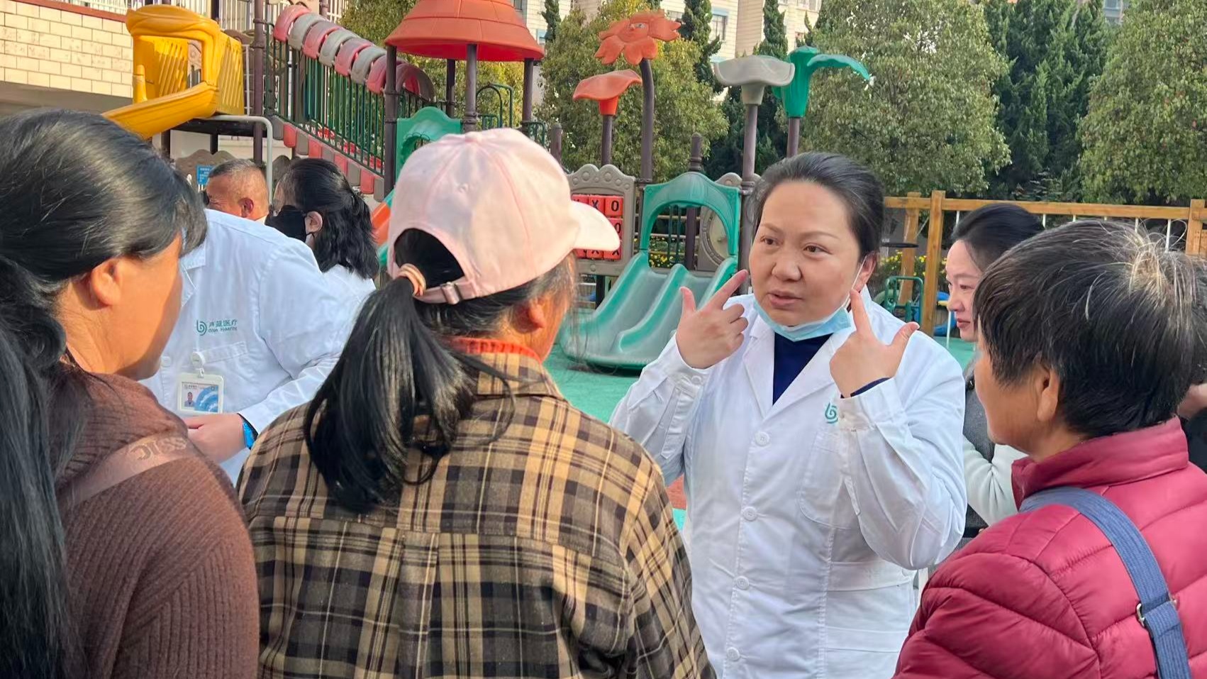 医生向家长讲解护耳知识(央广网记者 魏文青 摄)