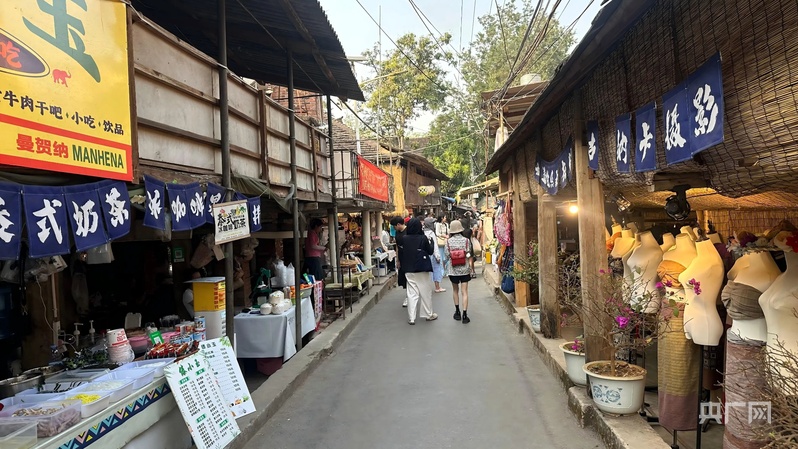 曼贺纳村中沿街遍布着各式小摊(央广网发 来源:景洪发布)