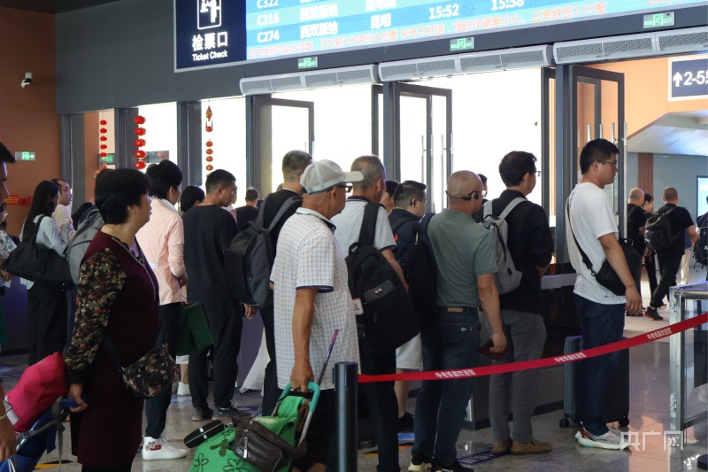 旅客有序排队检票(央广网记者 赵贝贝 摄)