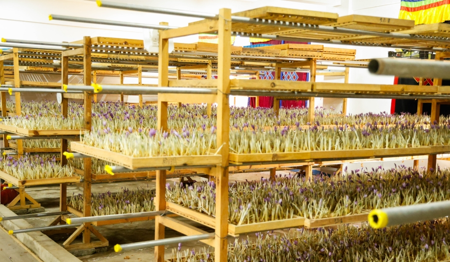 近日,循着花香来到云南省迪庆藏族自治州维西傈僳族自治县塔城镇其宗村,一朵朵红蓝相间的藏红花盛开在农户的花房里,这些小小花朵每年带动塔城镇400多户农户增收,年增收超千万元。